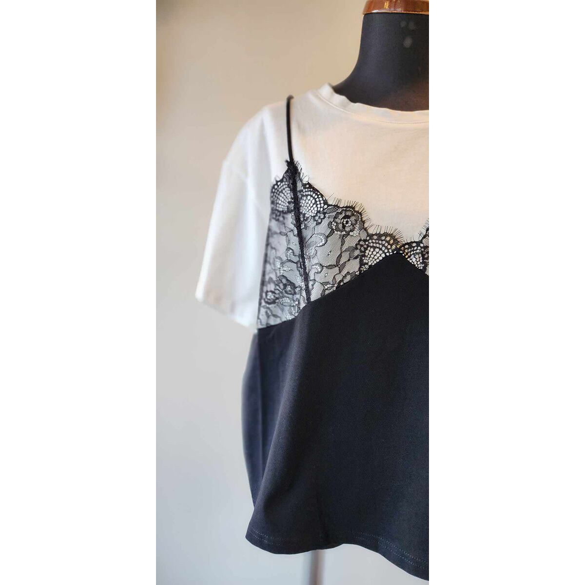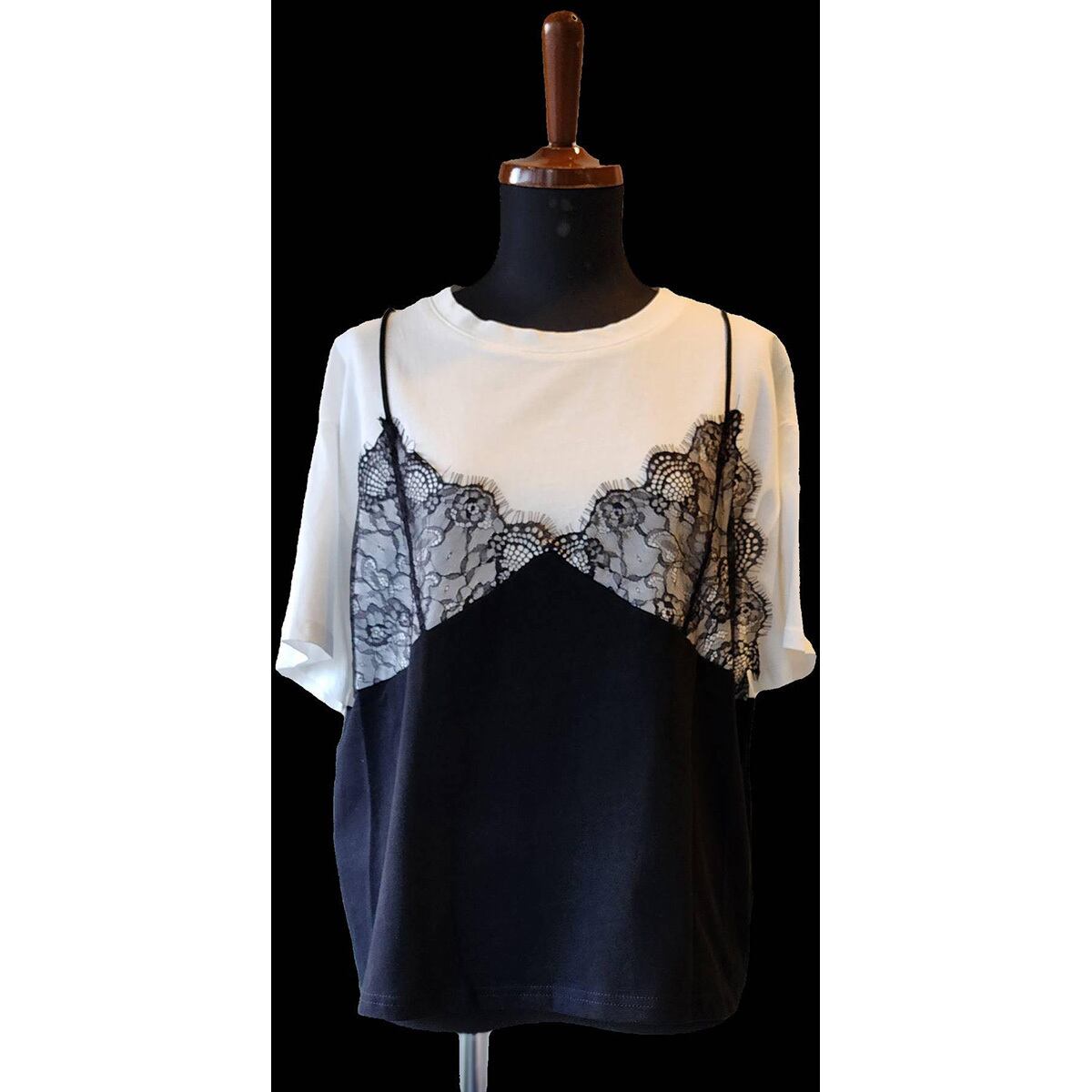 キャミソールがドッキングされたTシャツです。