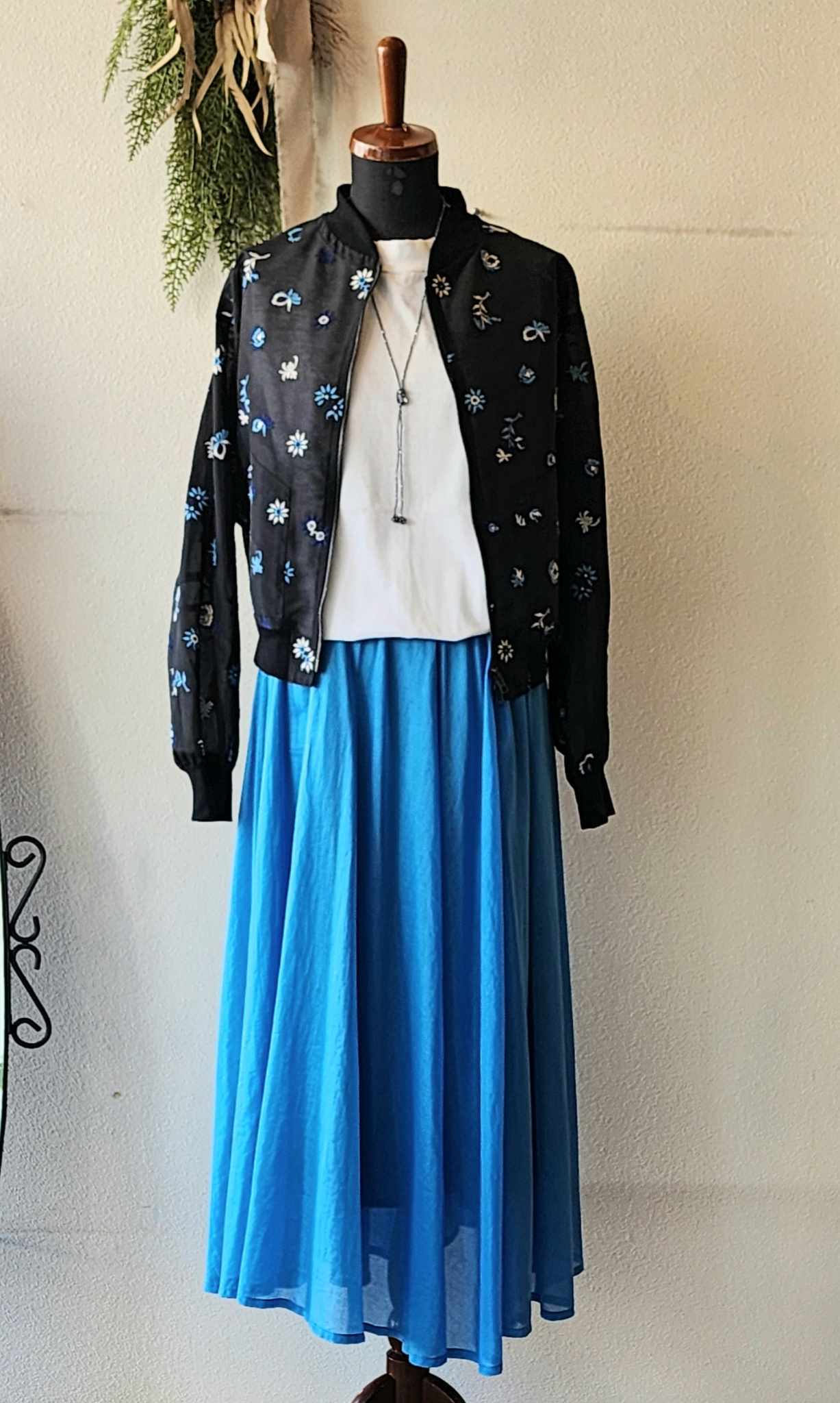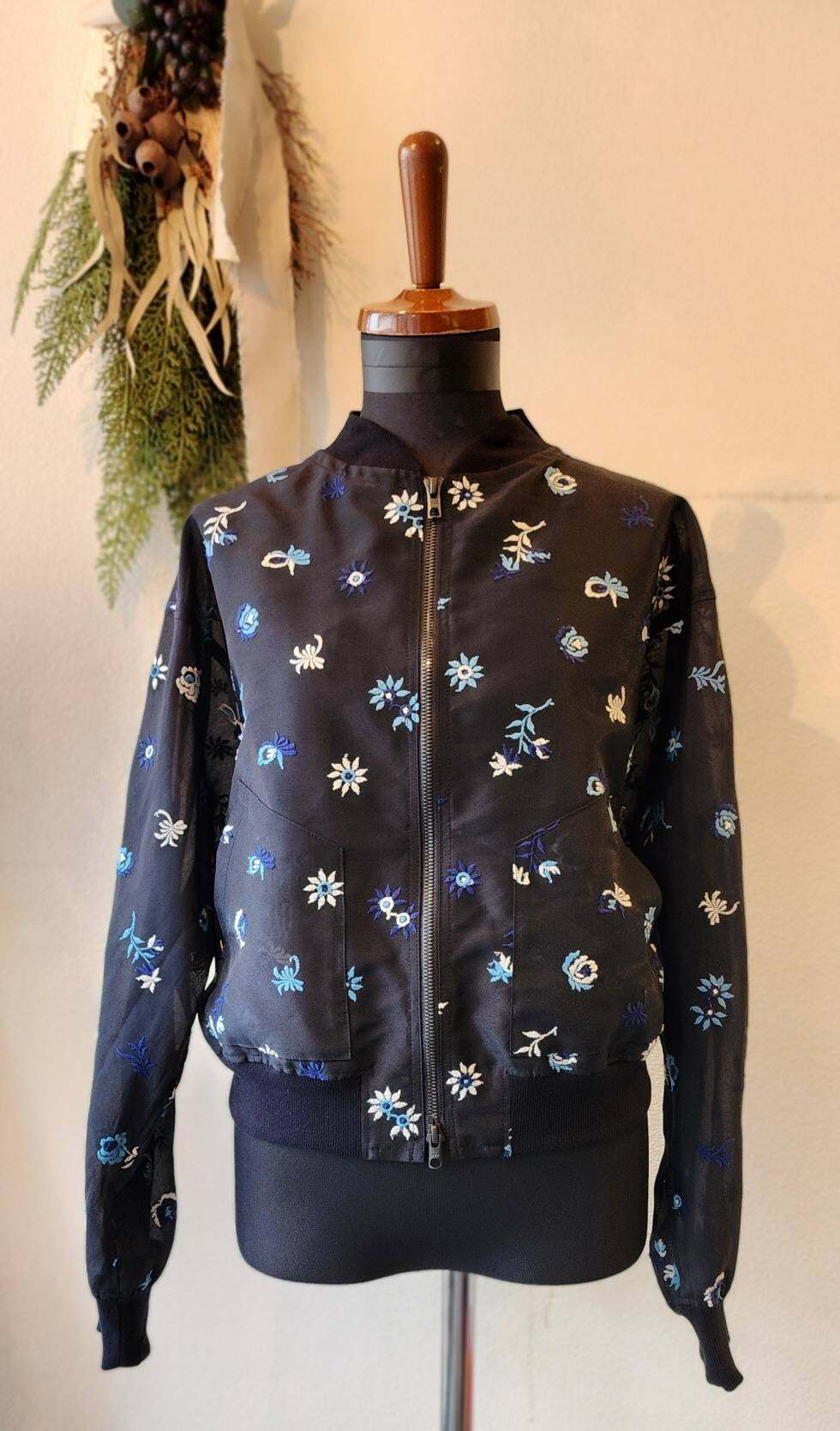 メンズライクなブルゾンも繊細な花柄の刺繍で女性らしくスタイリング出来ます。